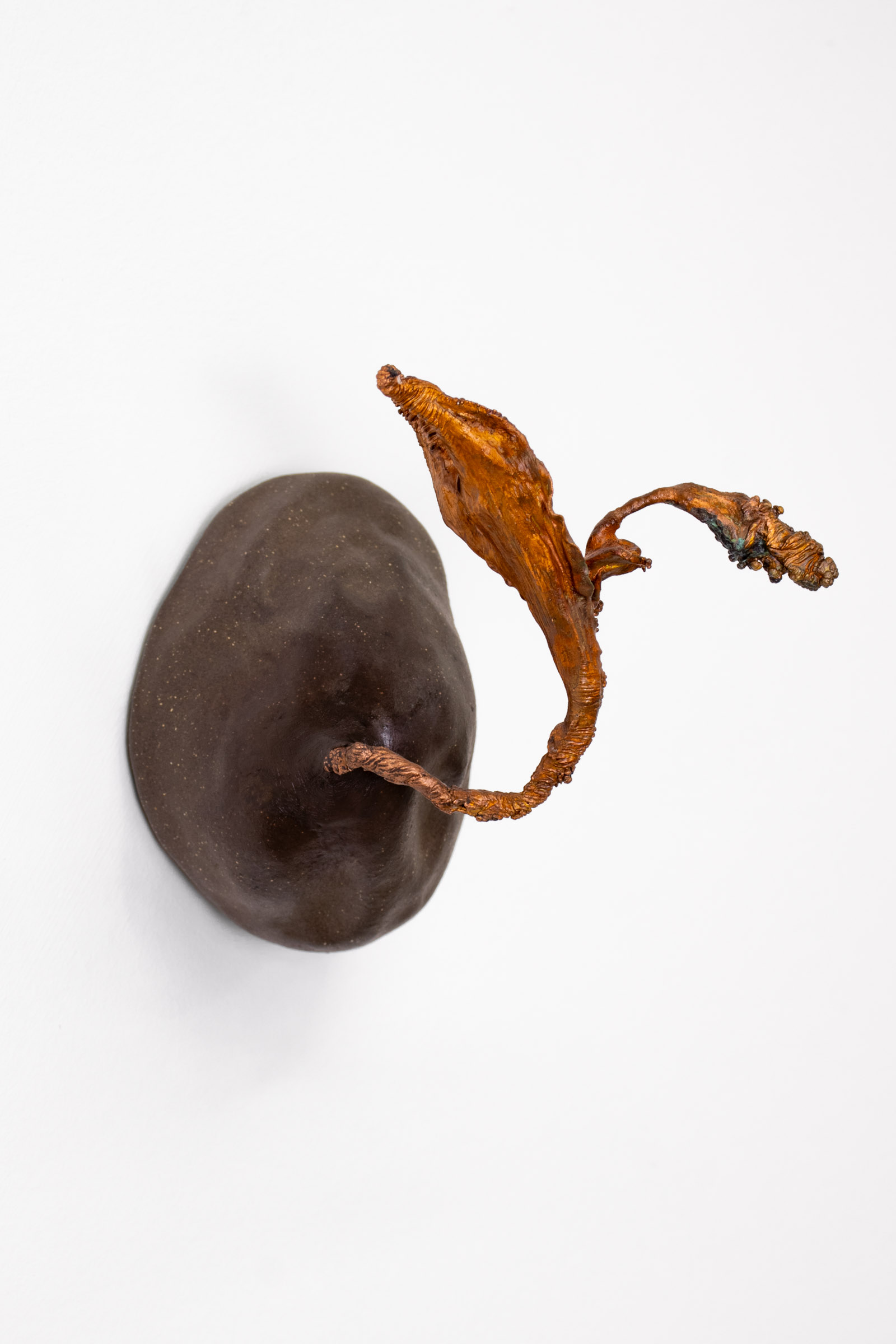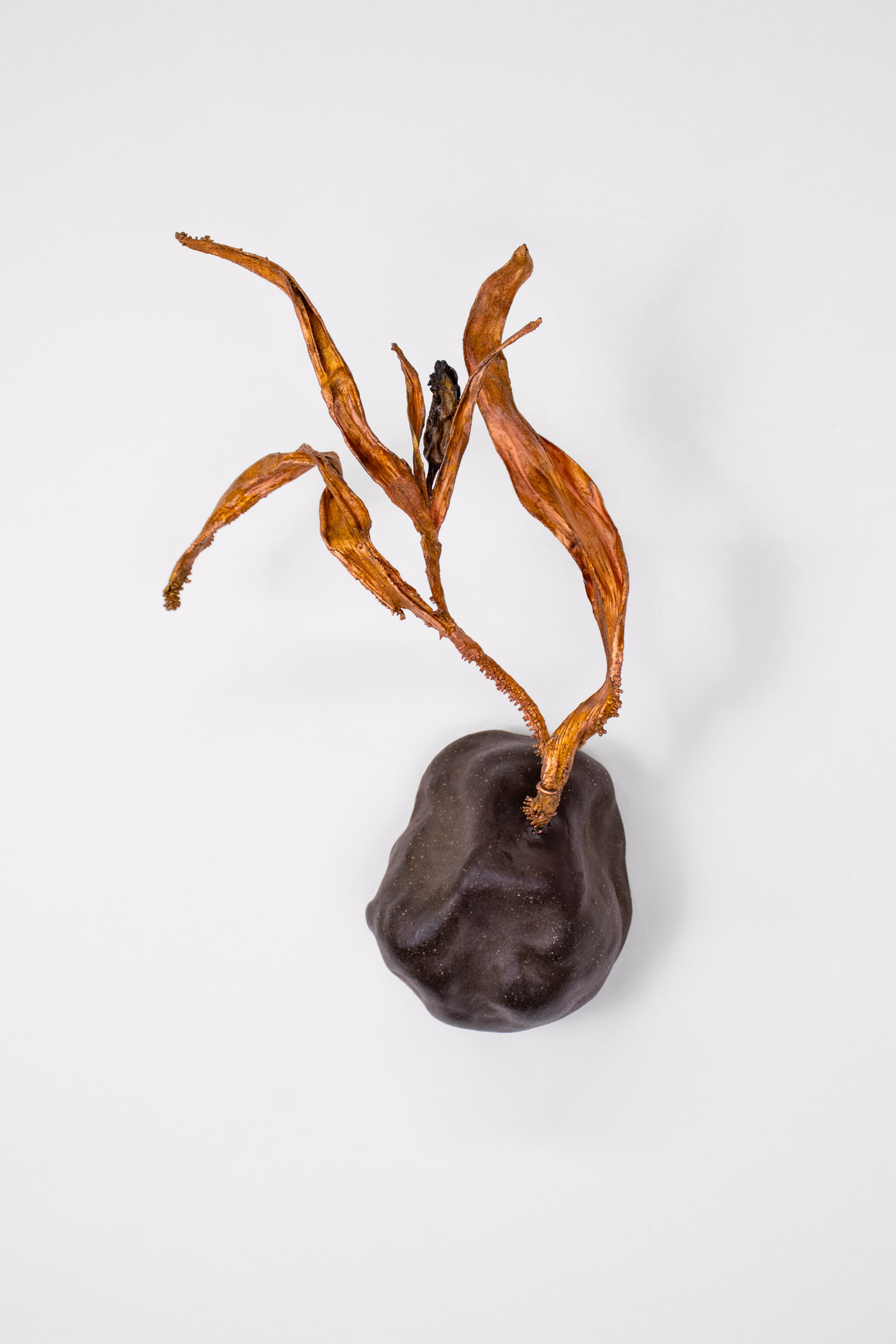 Copper plated tulip force-bloomed in previous body of work, stoneware