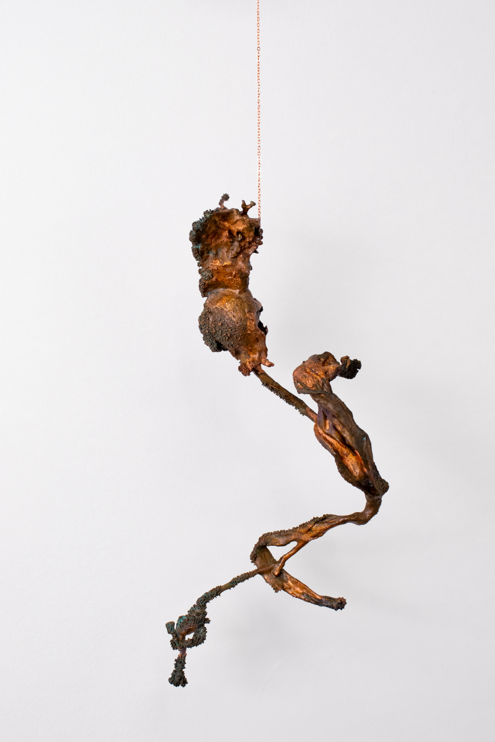 Copper plated tulip force-bloomed in previous body of work, copper chain